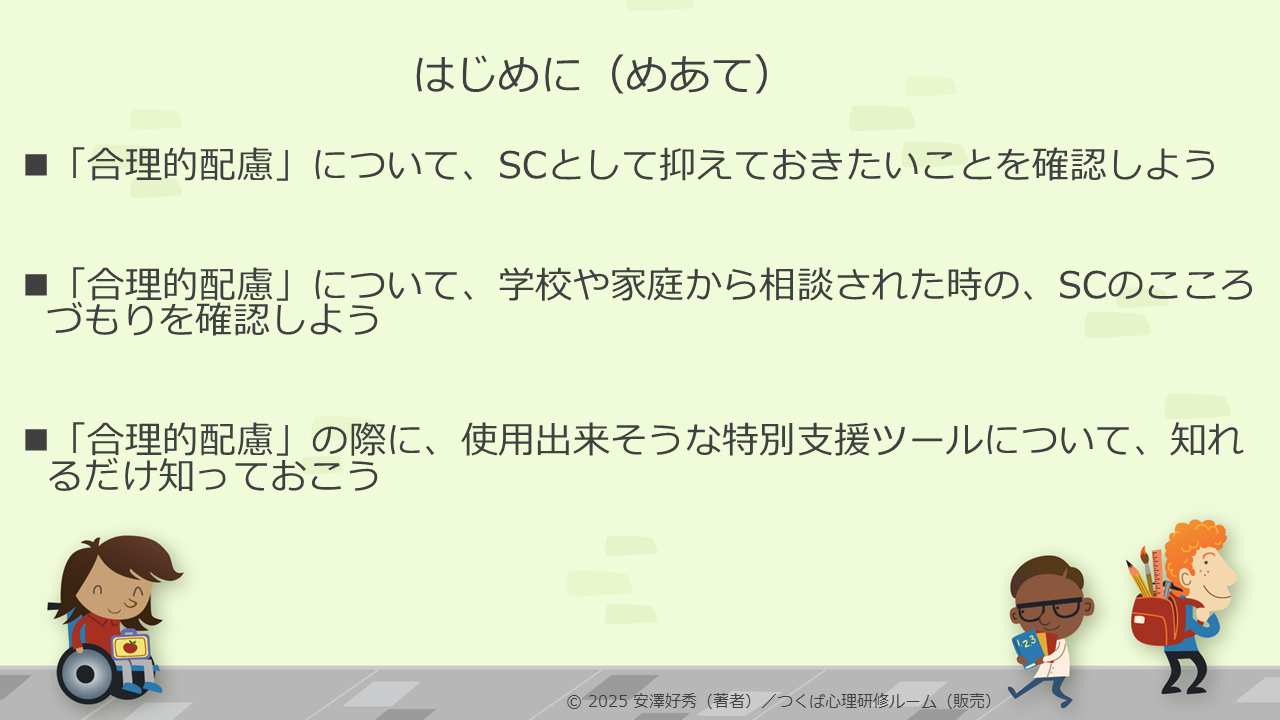 スクールカウンセラー、スクールカウンセラーを活用する学校の先生、お子さんの合理的配慮をお願いしたい保護者の方などにお役に立てそうな資料の提供を始めました。詳しくは